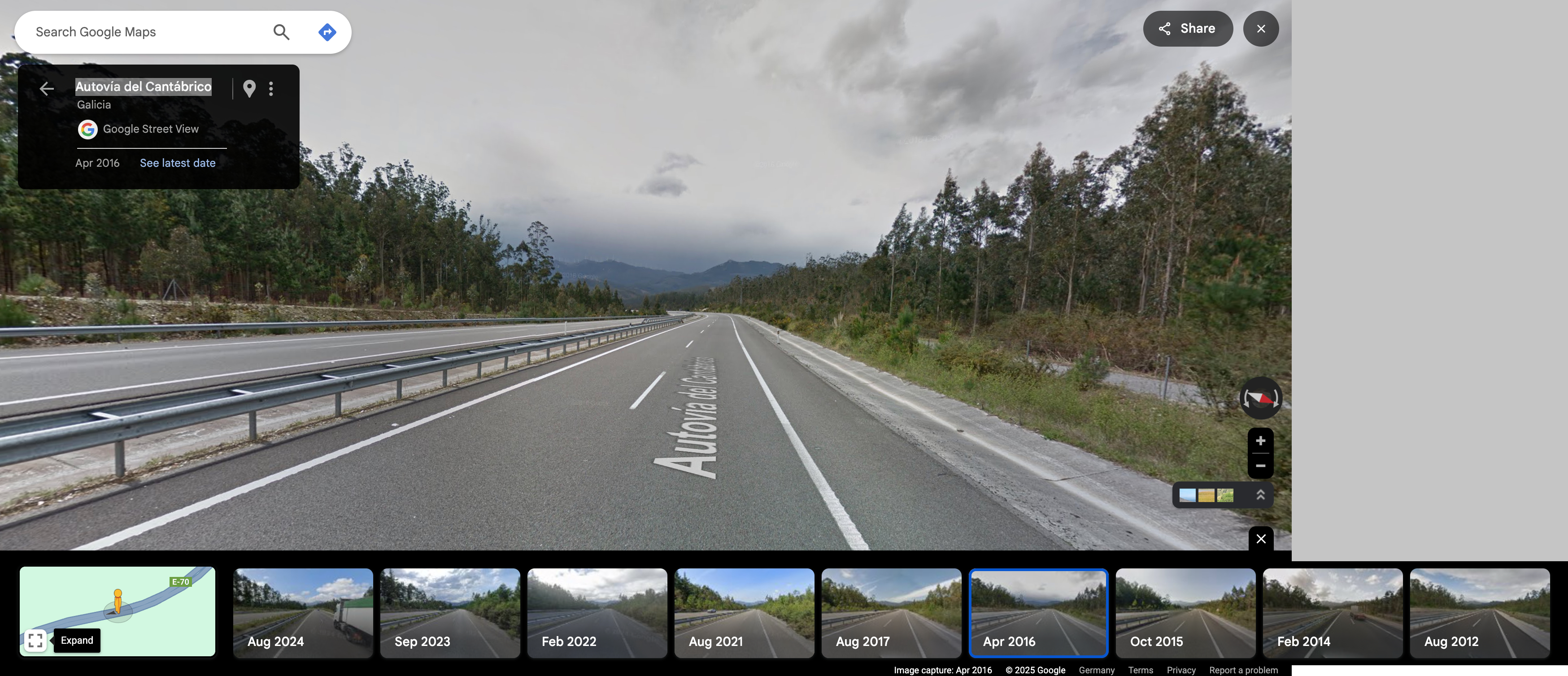 A highway Street View on Google Maps.