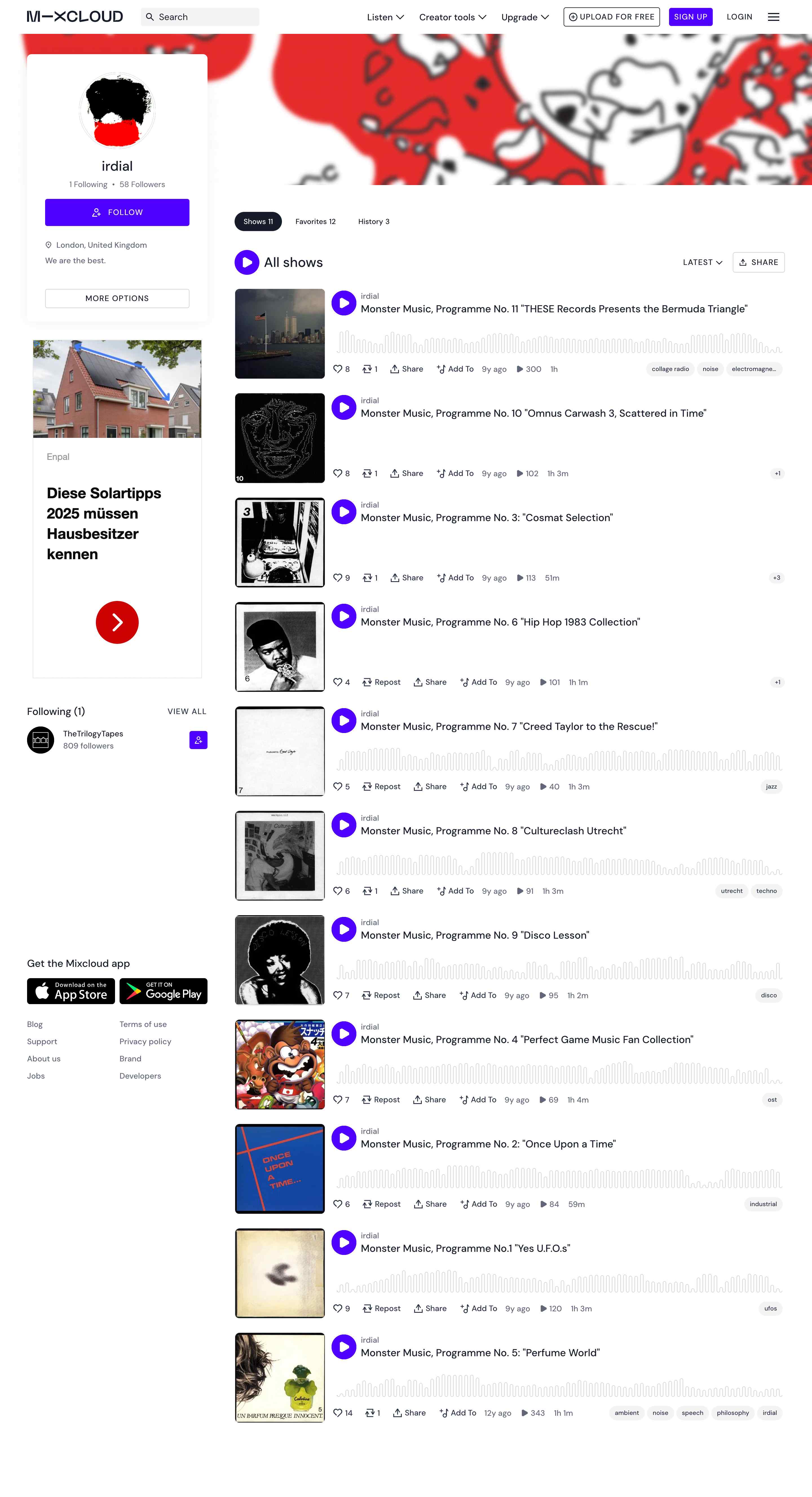 User-page of London-based DJ Irdial on Mixcloud, with (I hate the word but) essential pirate radio shows.