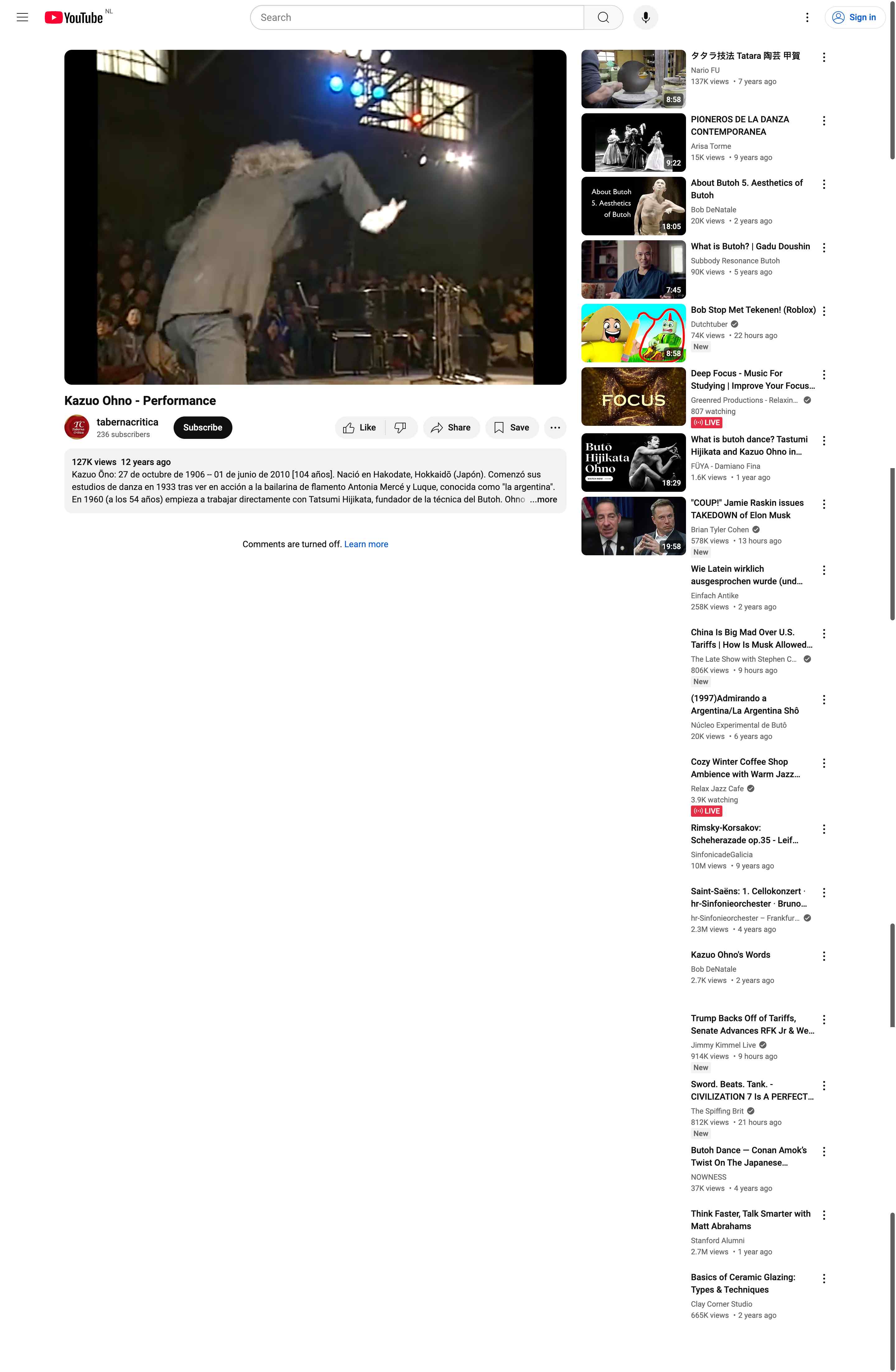 Video on [YouTube] of a Performance by Kazuo Ohno.