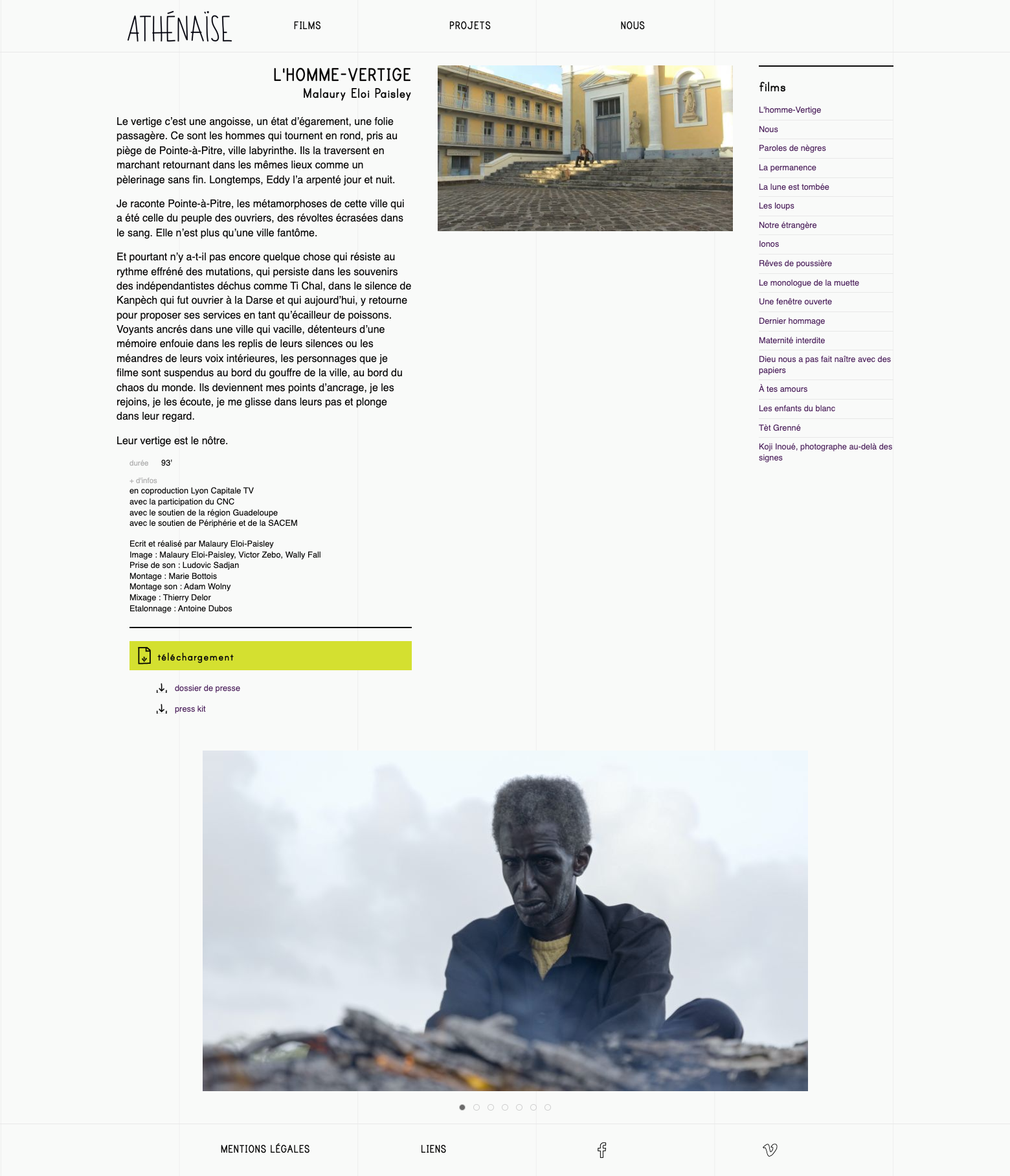 Website accompanying the film ‘L’homme-Vertige’ by Malaury Eloi Paisley.
