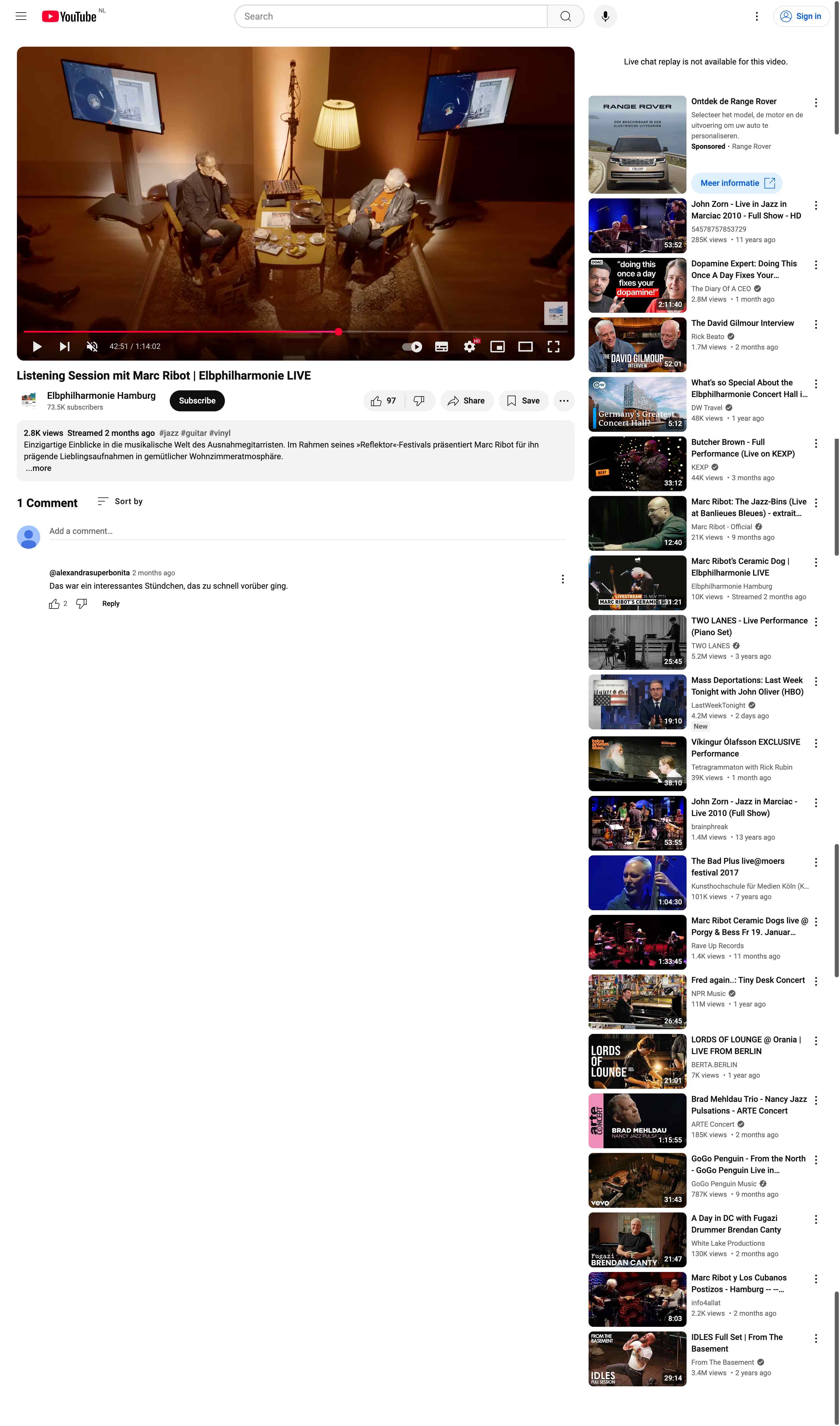Listening-session with favourite records of Marc Ribot in the Elbphilarmonie, Hamburg on [YouTube].