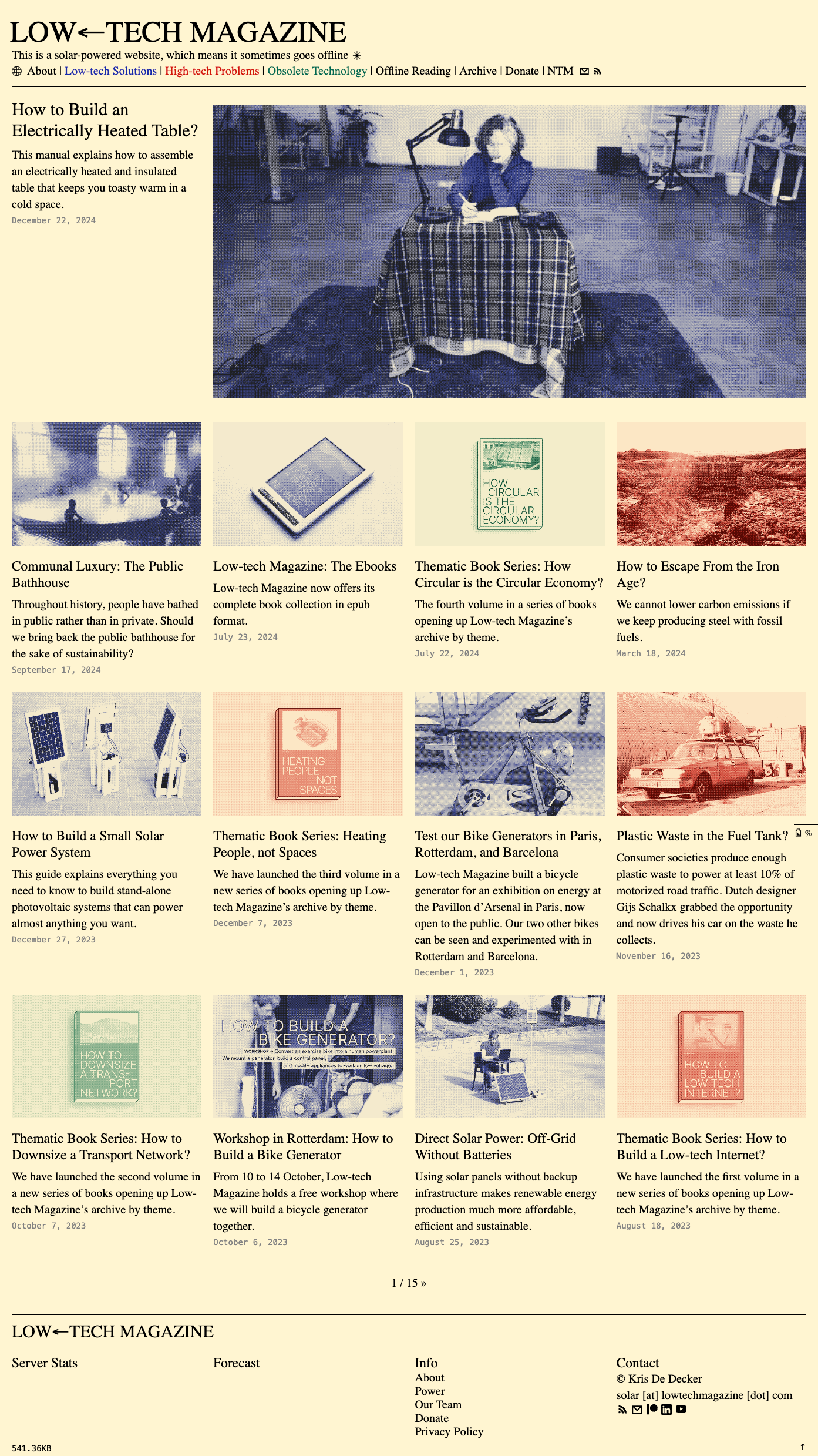 An online magazine powered by solar tech; itself low tech and about everything relating to low technology use and operation.