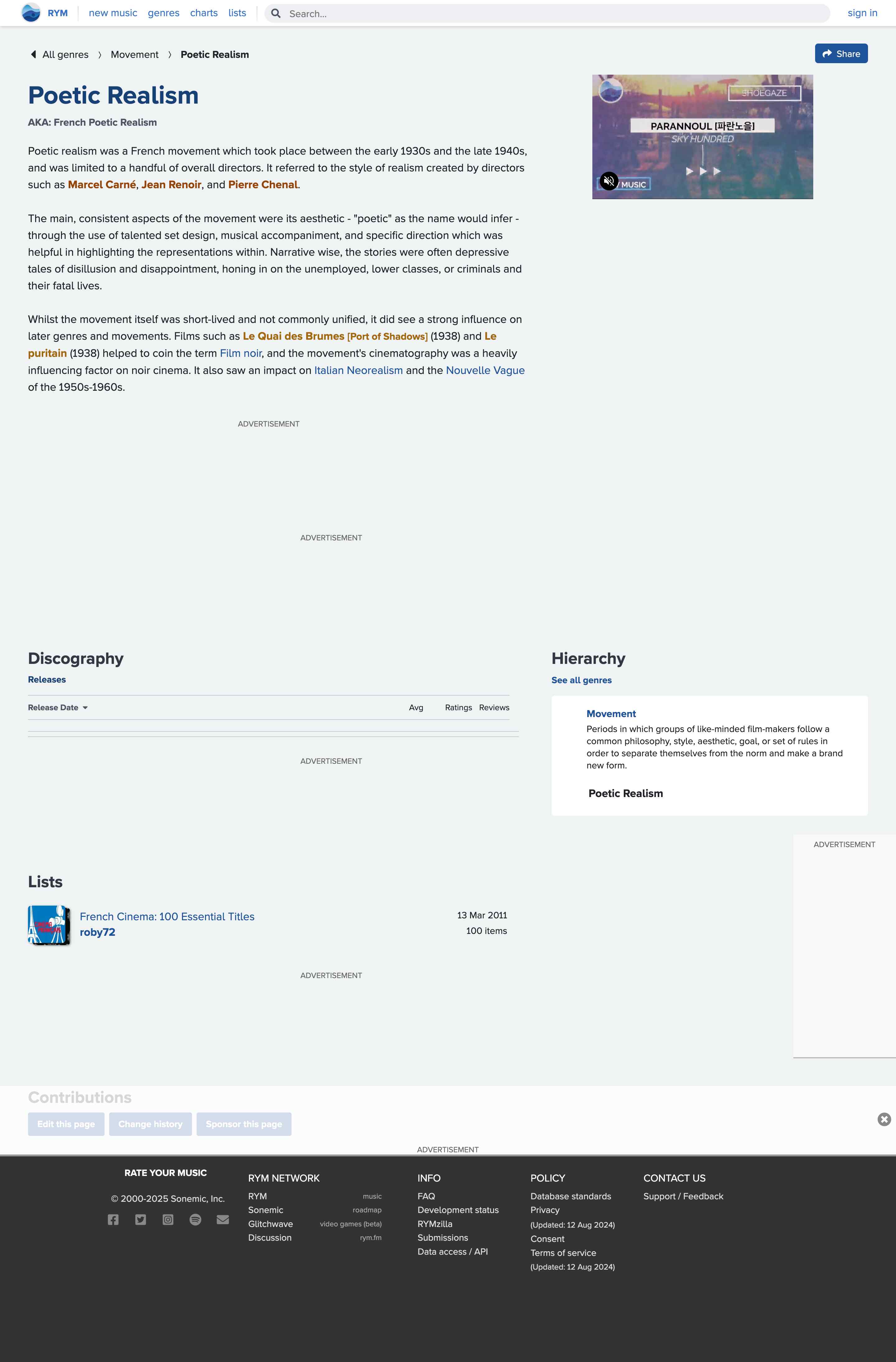 Description of Wiki and Community ‘Rate Your Music (RYM)’ on ‘Poetic Realism’.