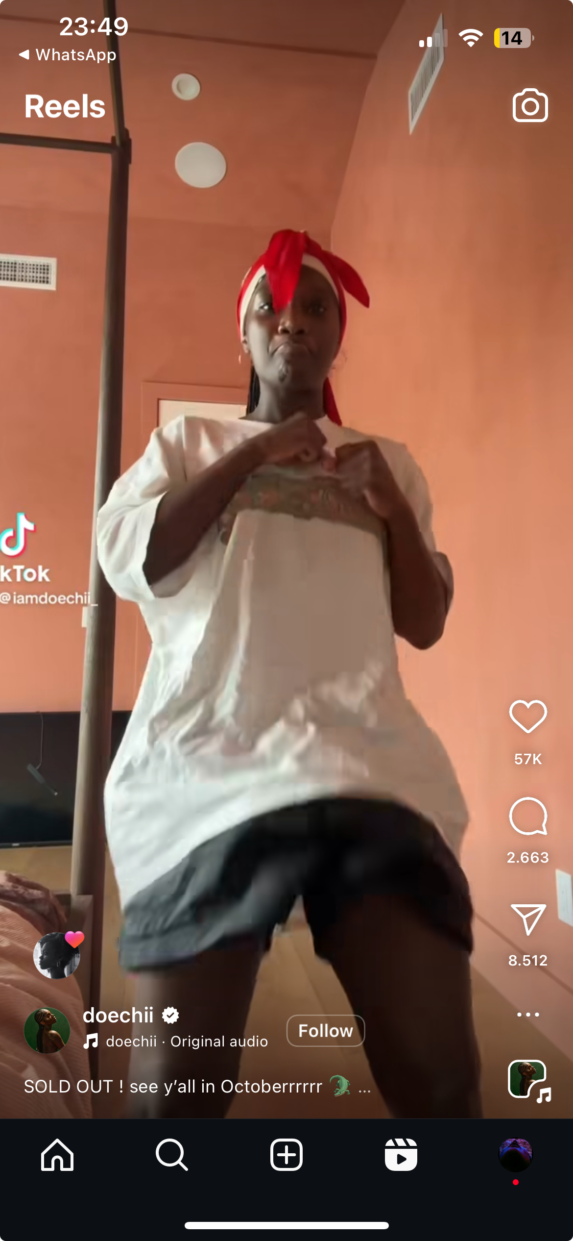 Reel on [Instagram] by musican Doechii celebrating her sold out tour.