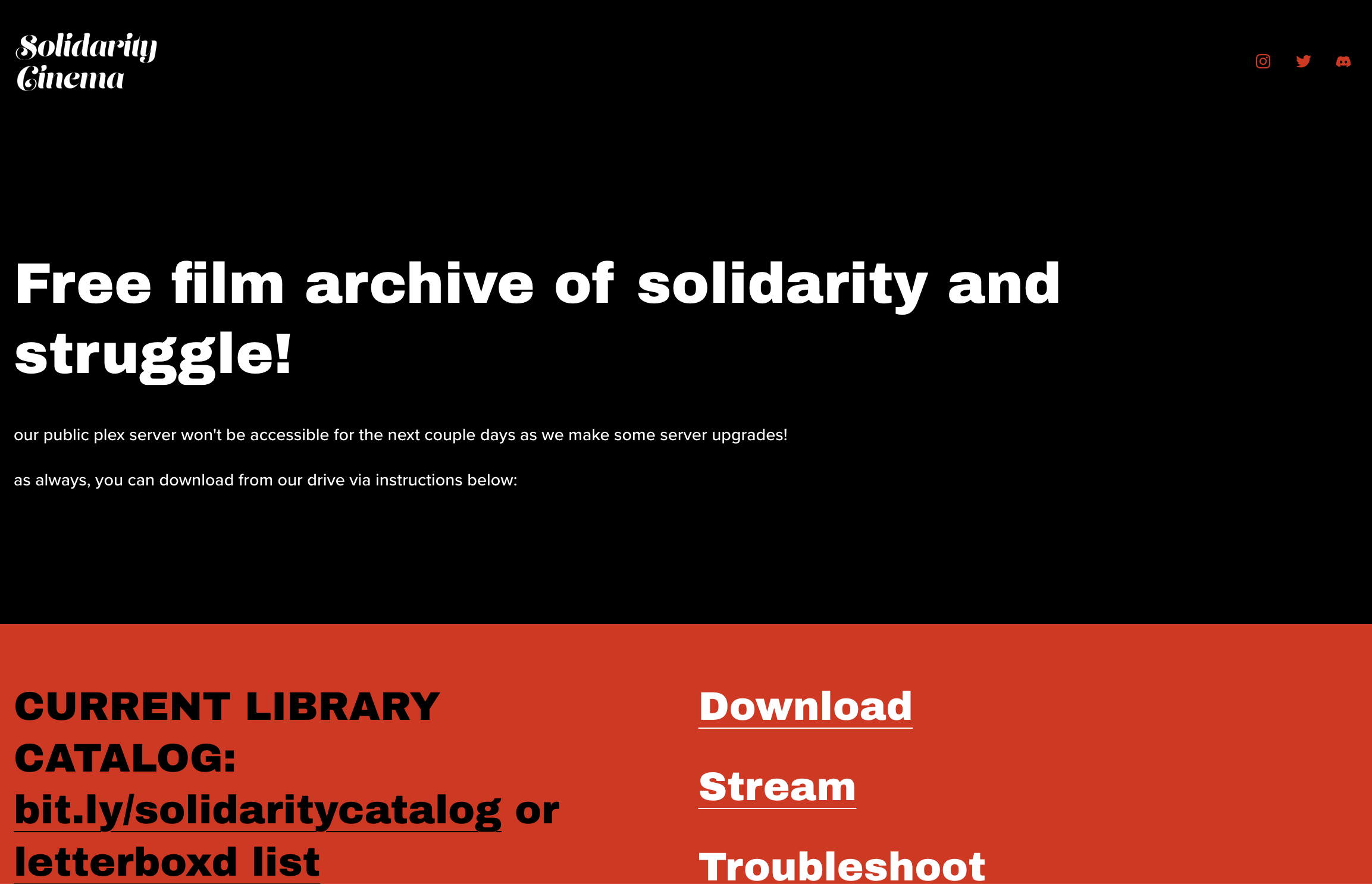 Is a shadow library and an archive of films in the context of ‘solidarity and struggle’.
