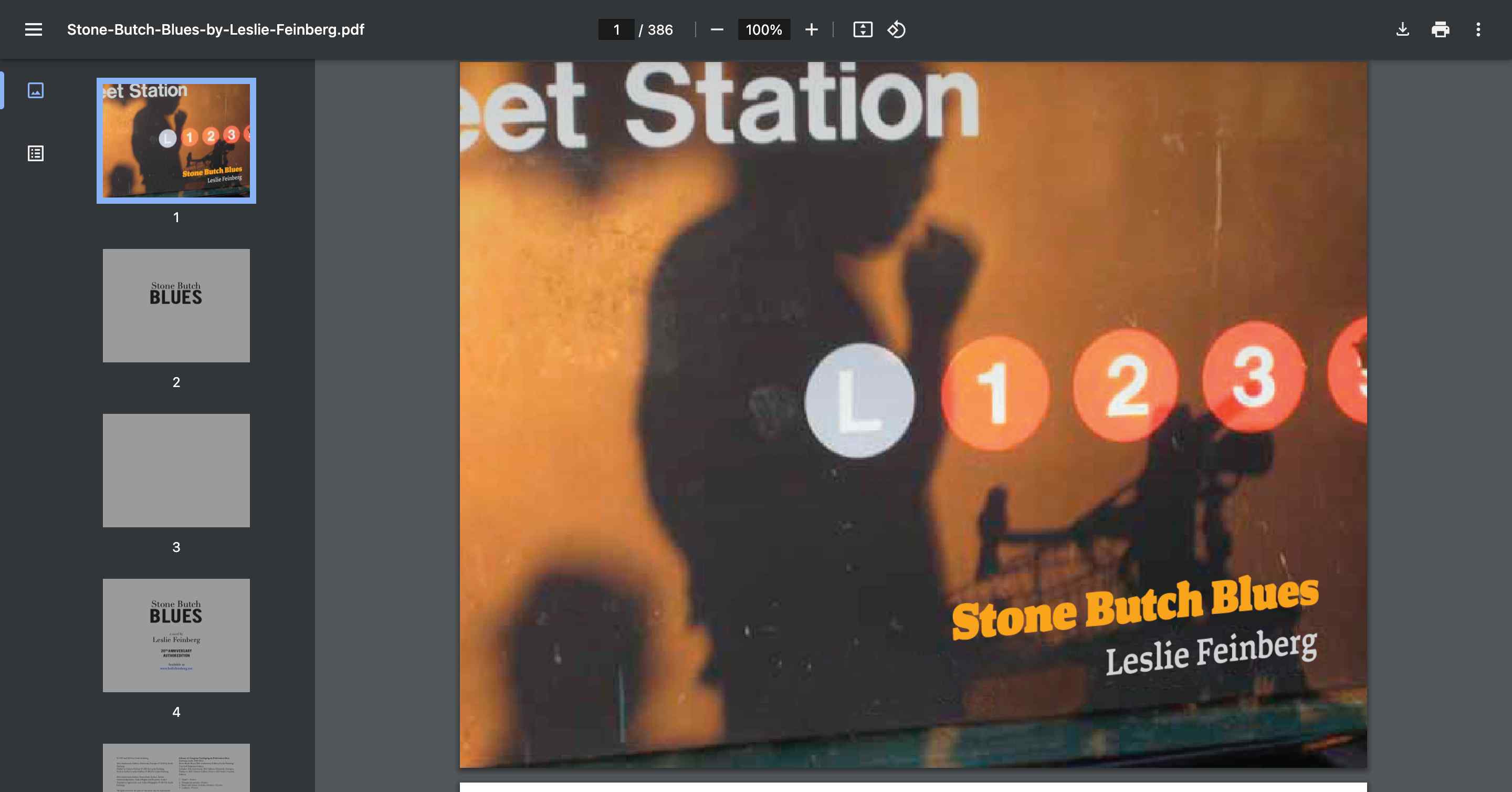 PDF of novel ‘Stone Butch Blues’ by Leslie Fineberg on their website.