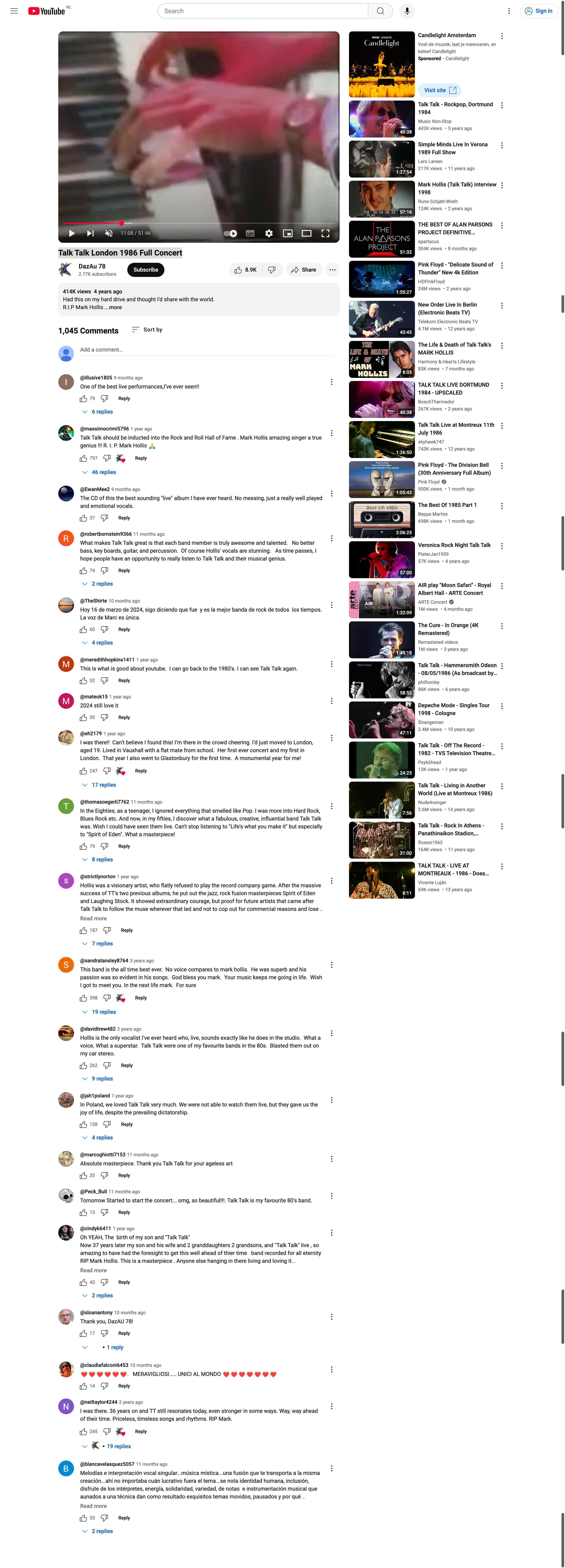 Recording of a Talk Talk concert in 1986 in London on [YouTube].