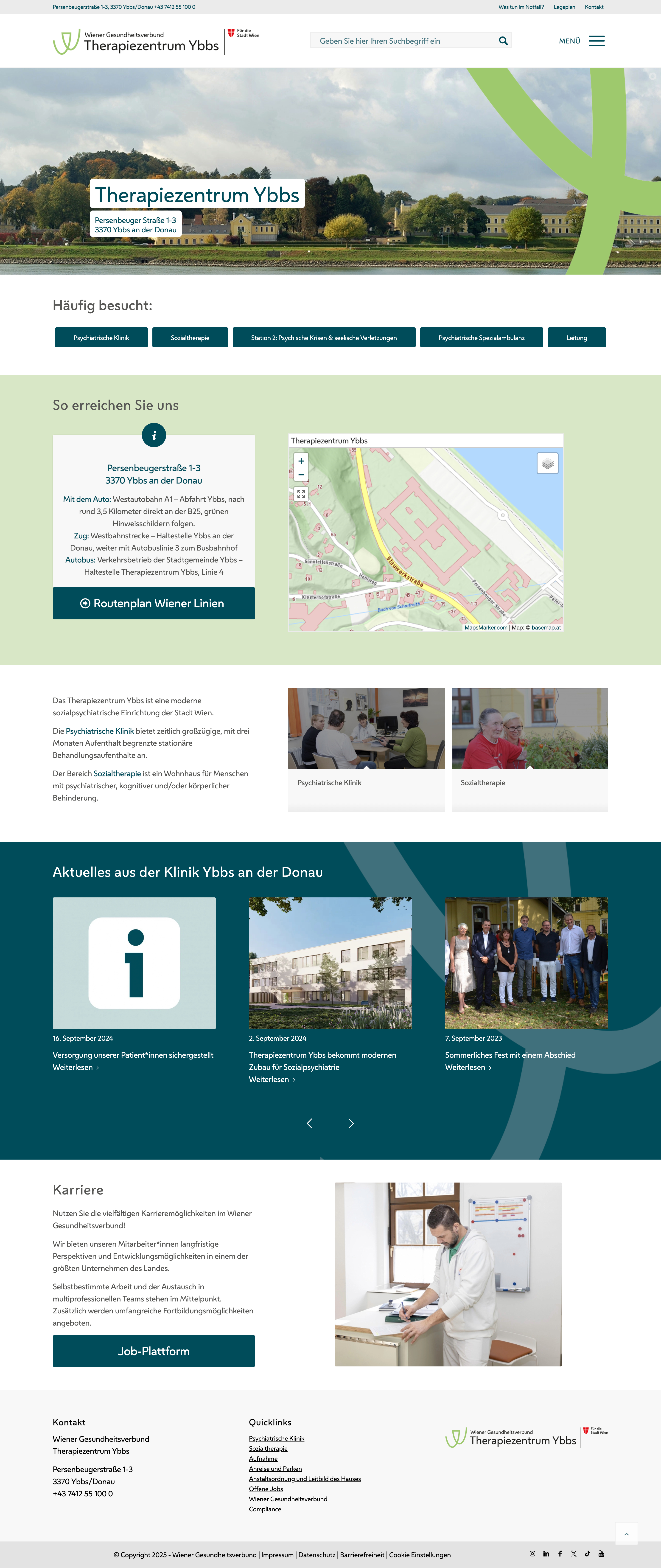 Website of public psychological therapy center Ybbs, Vienna in Austria.