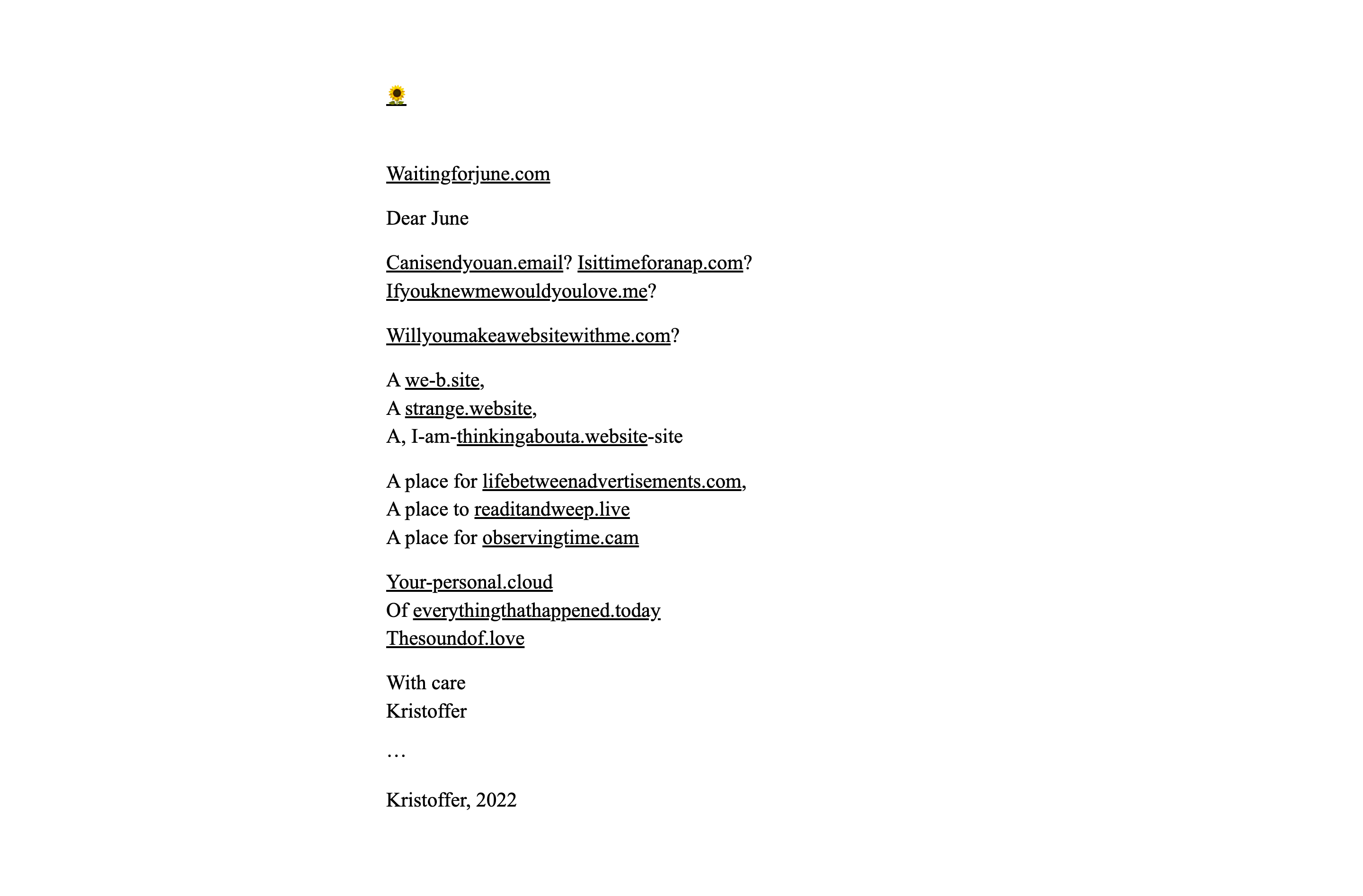 ‘Waiting for June’ poem of a website of poetry with URLs.