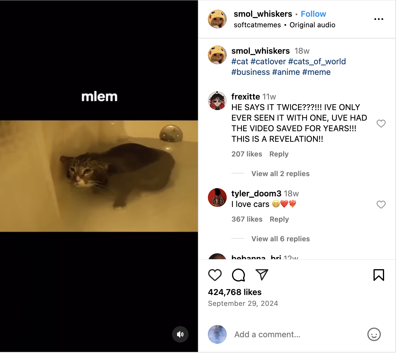 [Instagram]-video of a cat in a bathtub.