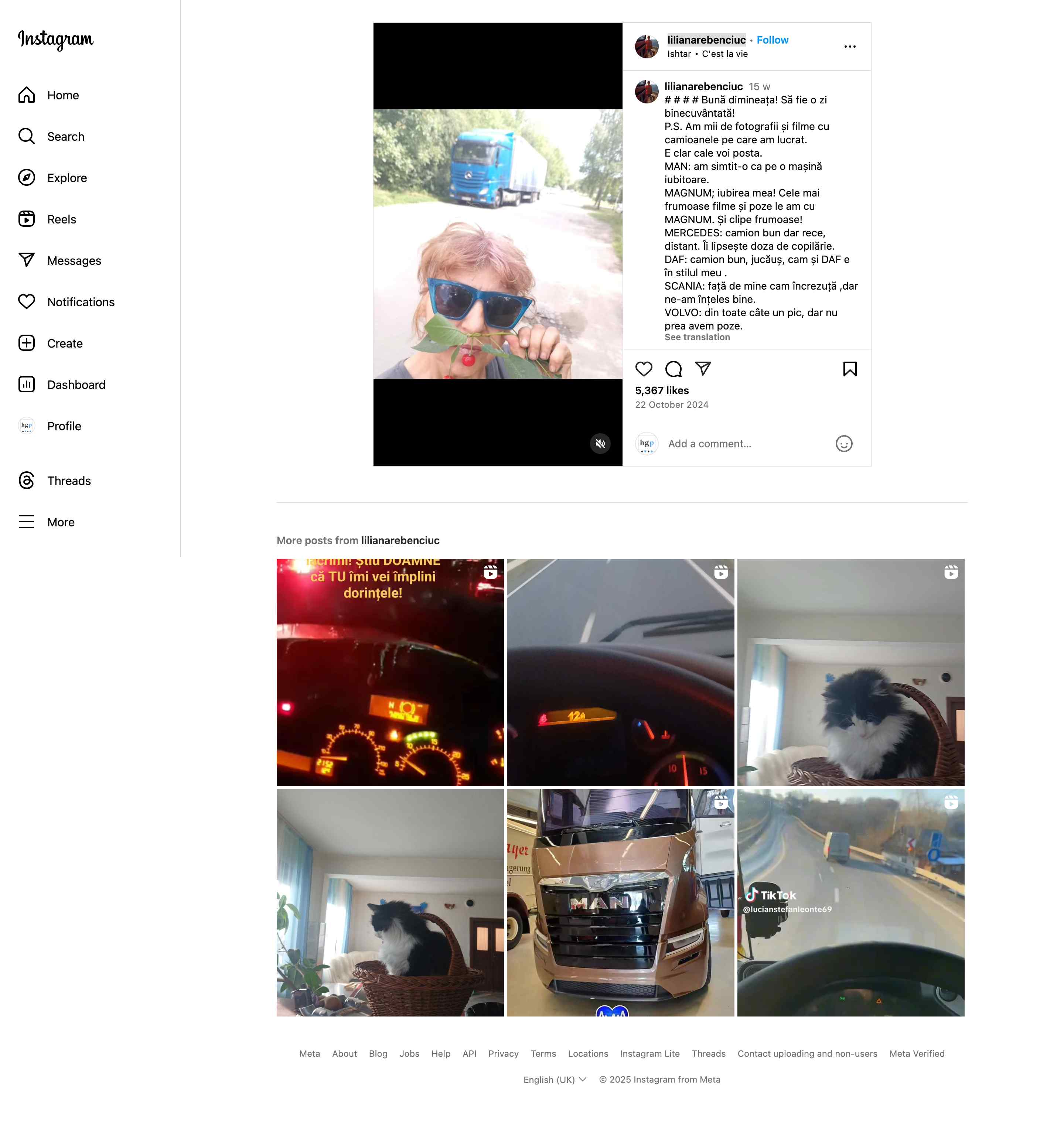 Reel of trucker ‘lilianarebenciuc’ showing her everyday.